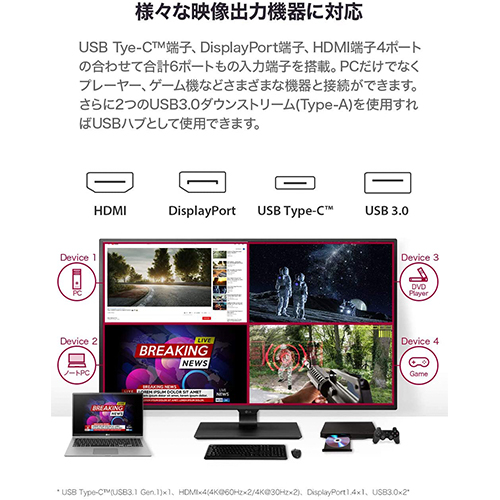 LG 42.5型 4K液晶モニタ- UltraFine Display ノングレアIPSパネル/HDR対応/フリッカーセーフ/スピーカー内蔵