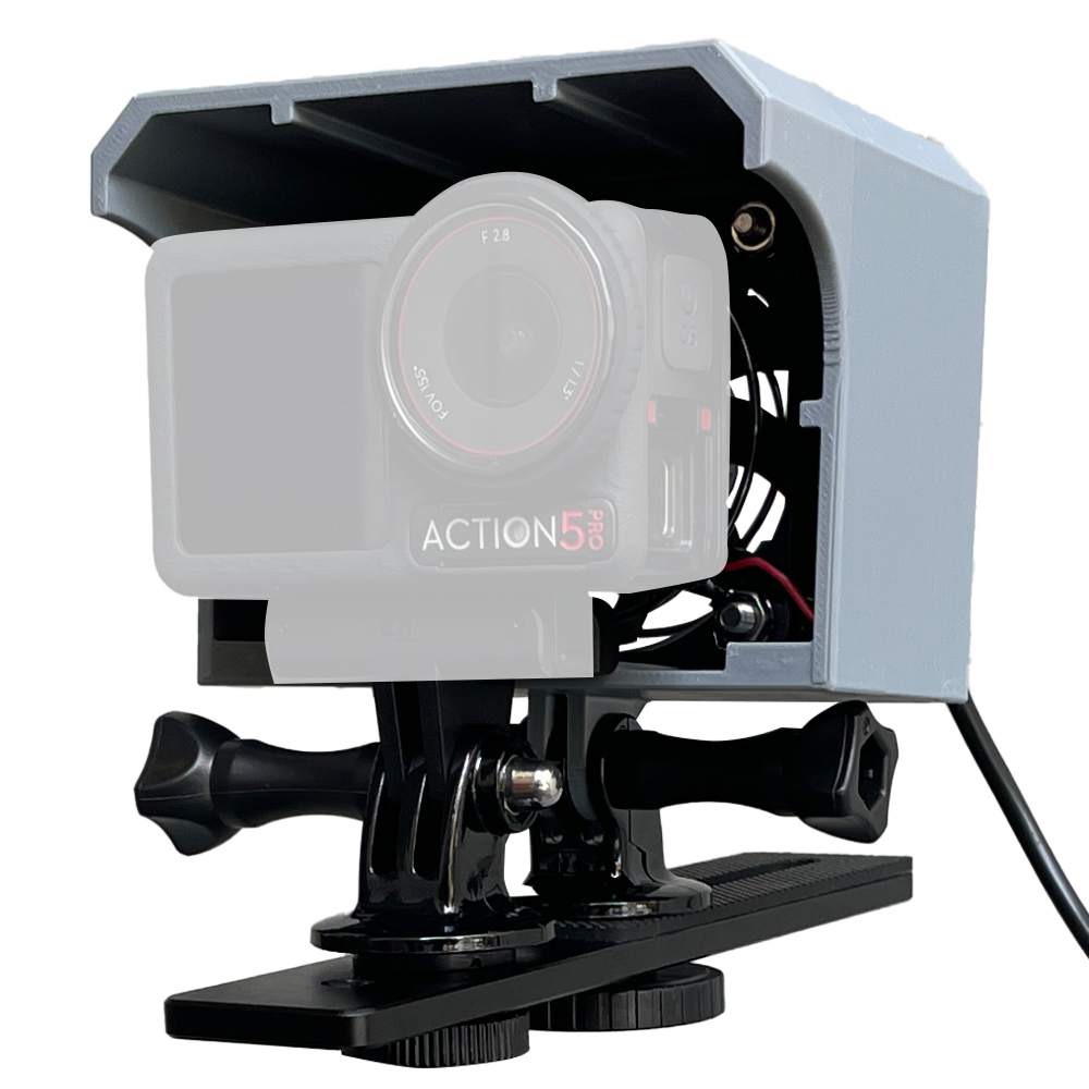 当社独自設計のGoPro/Osmo Actionシリーズ対応 空冷ファンセットは、夏場などで発生しやすい発熱による撮影停止を防ぐため、強力なファンでカメラ本体を効果的に冷却。大切な瞬間を逃しません。